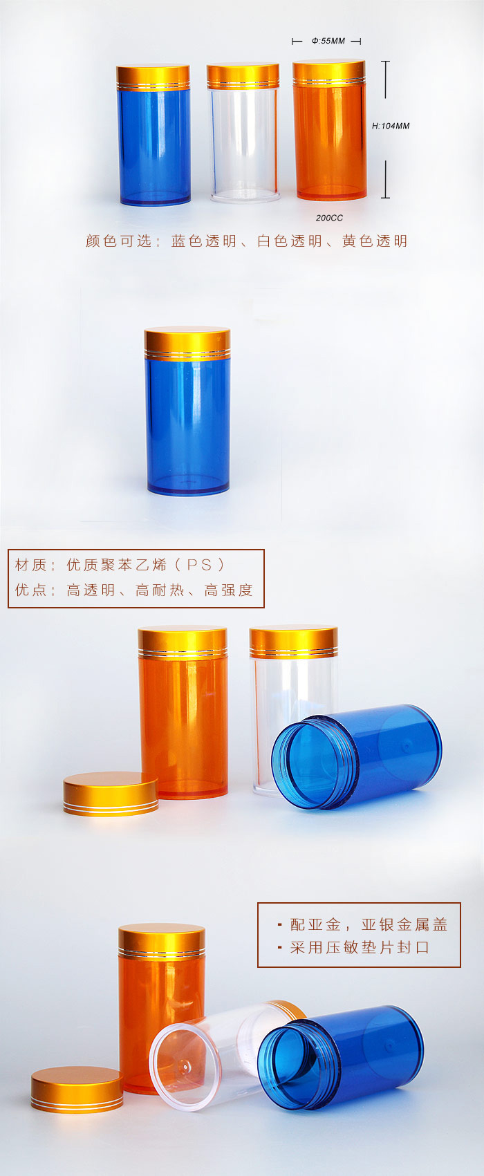 200ccPS高(gao)透塑料瓶容量:200cc。